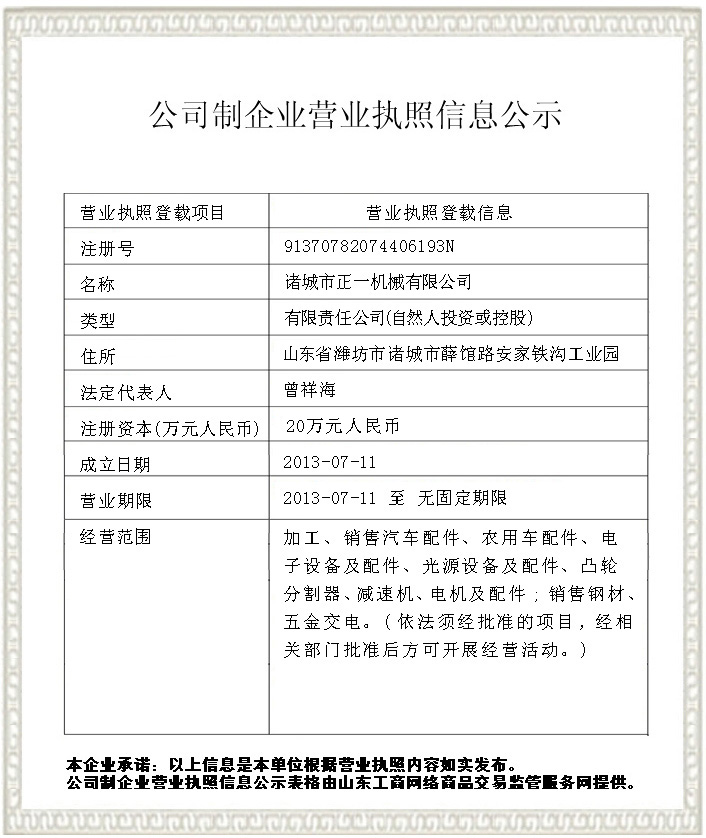 诸城市正一机械有限公司是一家集科研、加工制造凸轮及分割器为一体的公司。公司主要从事生产高精度凸轮系列为主导产品,目前已形成弧面式、平行式、圆柱式三大类别,另可根据用户需求加工一些特、异形凸轮,满足一些用户特殊需求。